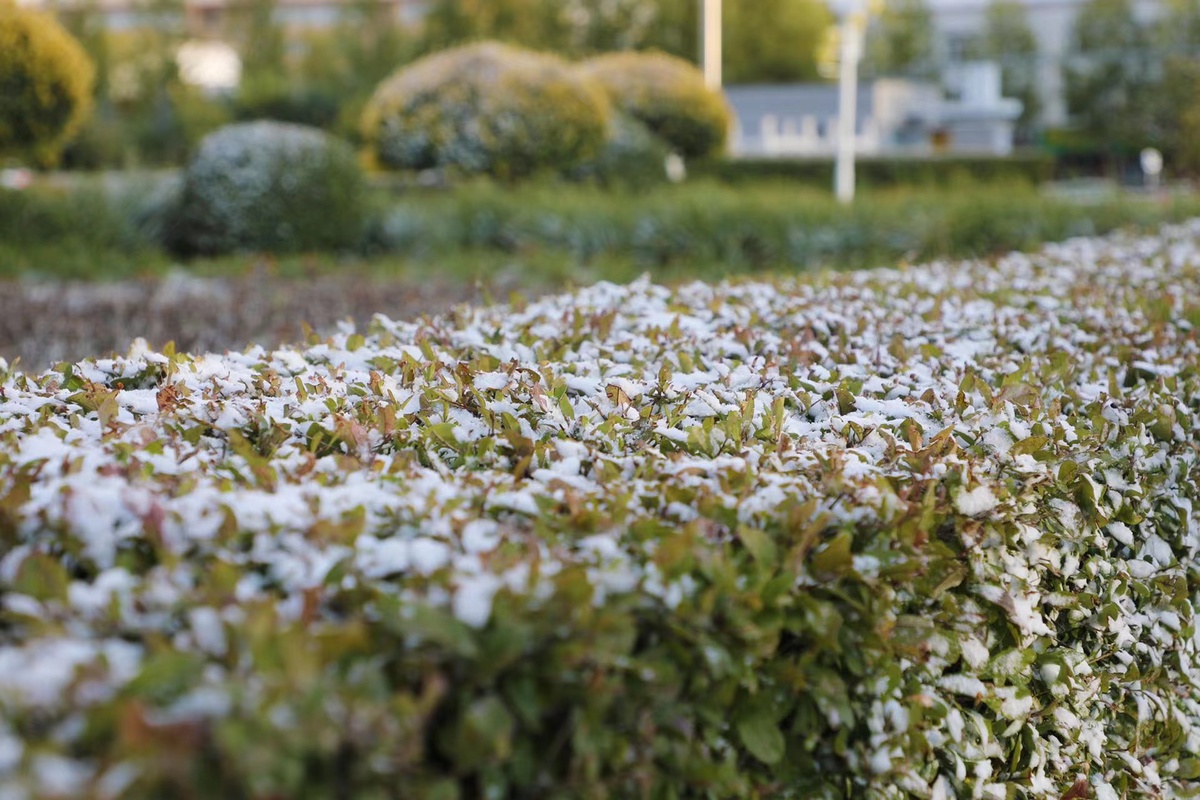 A light snowfall dusted Zhangjiakou, Hebei province, on Thursday, inspiring residents to take photos of whirling snowflakes.