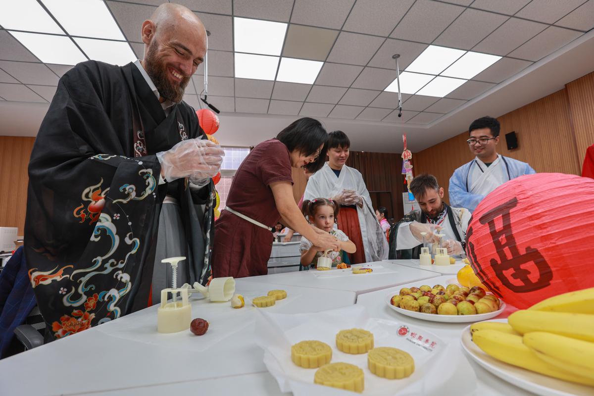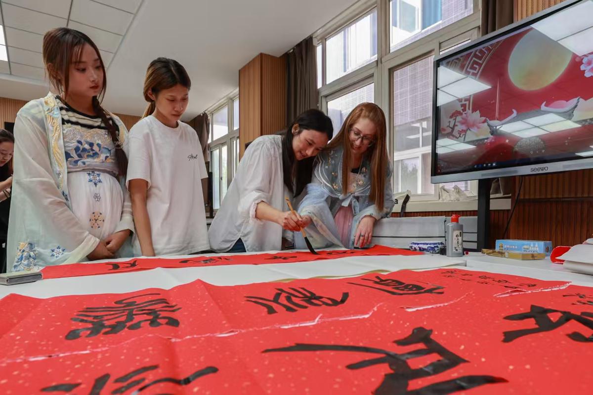 Ahead of the Mid-Autumn Festival, teachers and students from home and abroad at Handan University in Handan, Hebei province, carried out a festival welcoming activity on Thursday, filled with traditional customs of the festival and culture of the city. Handan is known as the home of Chinese idioms.